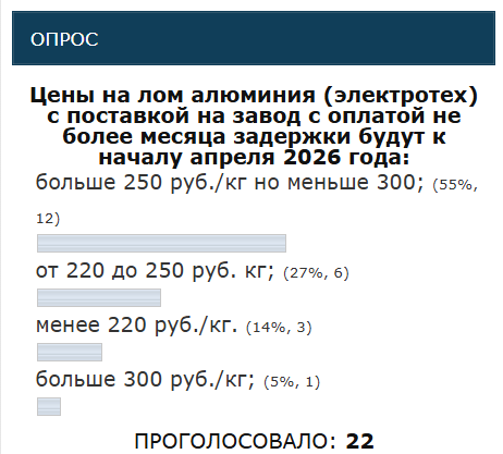 Подведение итогов опроса ИНФОЛОМ по ценам на лом алюминия